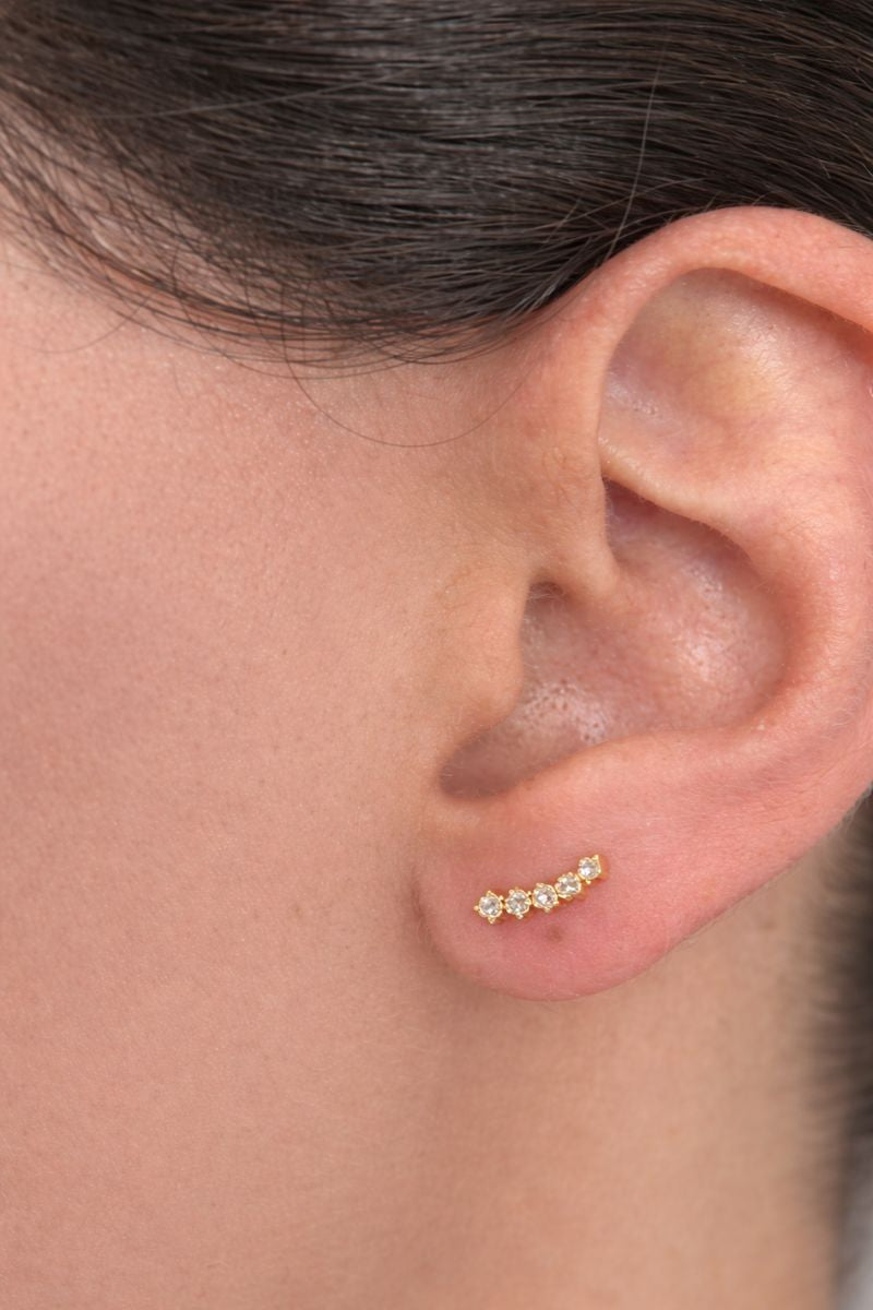 Arete de plata de ley .925 con baño de oro de 18K, presentan un diseño con piedras de zirconia 5A.