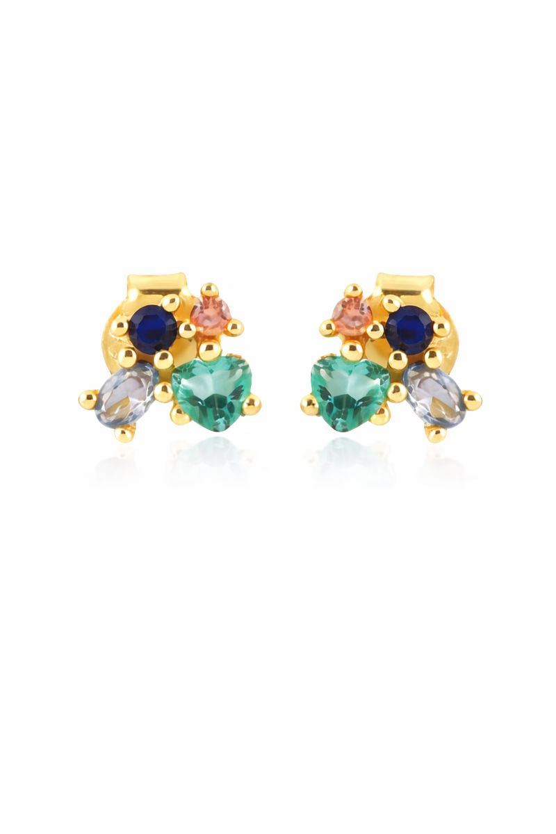Aretes en plata .925 cuentan con piedras de zirconia cúbica redondas y coloridas.