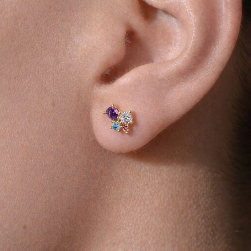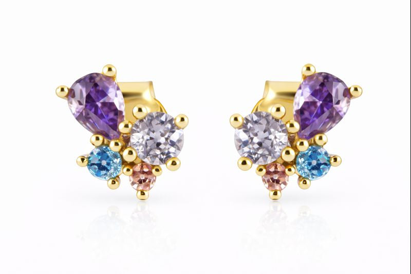 Aretes en plata cuentan con piedras de zirconita cúbica redondas y coloridas..