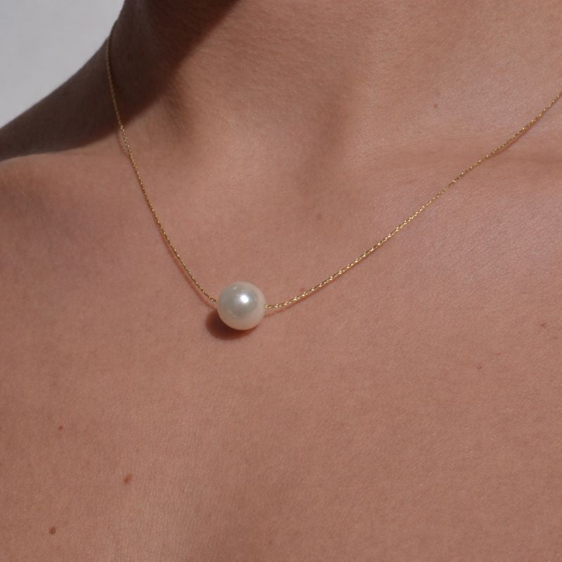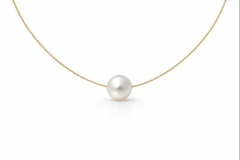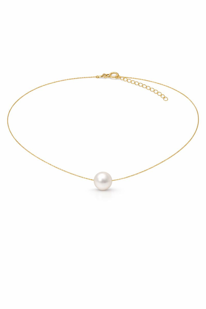 Cadena chapa de oro con perla. 43+5cm.