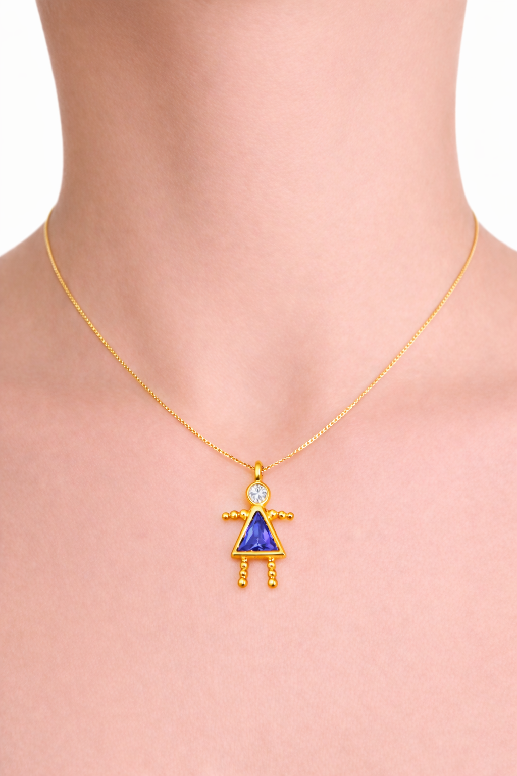 Cadena chapa de oro 18k con charm de AGOSTO, baño de oro 18k.  45CM.
