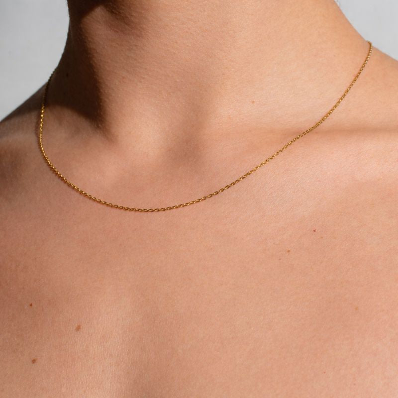 Cadena de charms en acero inoxidable con revestimiento de oro de 18K, perfecta para los charms fijos, pero le puedes poner cualquier charm de nuestra colección.