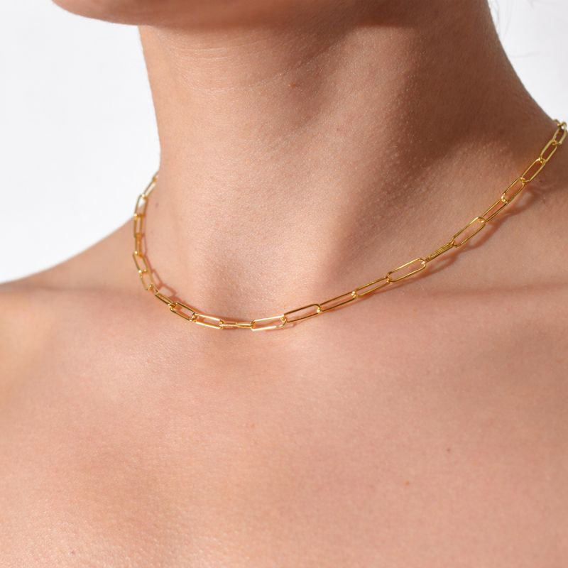 Cadena de eslabones en Plata, con recubrimiento de Oro de 18K, Collar de Clip ideal para personalizar con charms. 40.5*1.5cm