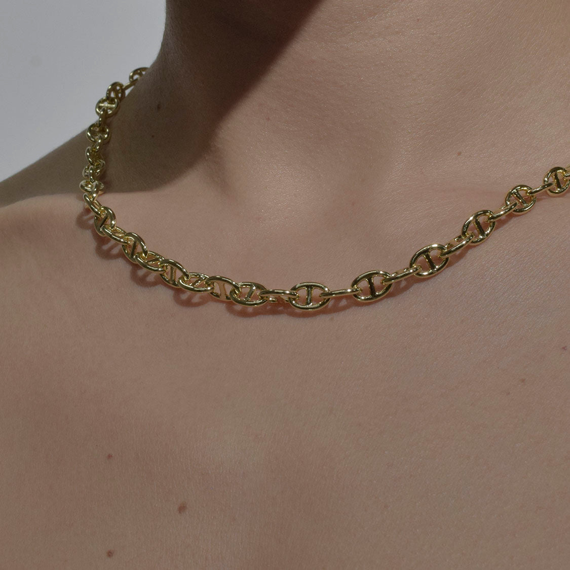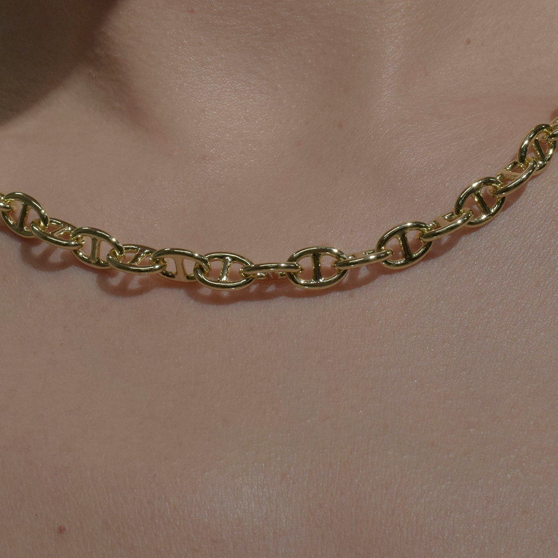 Cadena tipo eslabones, baño de oro 18k en dorado.