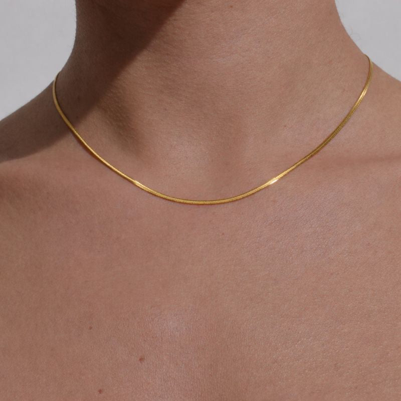 Cadena de acero inoxidable, plana en color dorado. 2mm 45cm.
