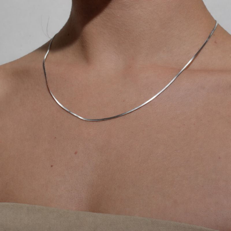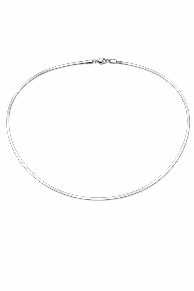 Cadena de acero inoxidable, plana en color plateado. 2mm 45cm.