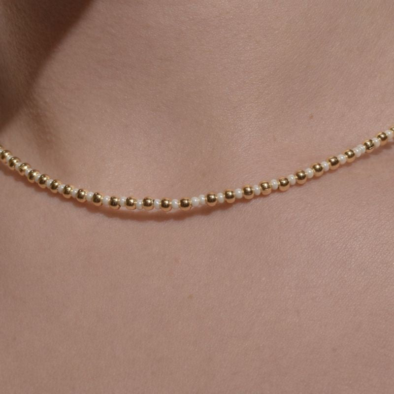 Collar de cuentas doradas y arena 40+5CM.