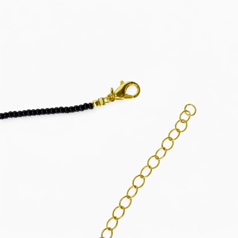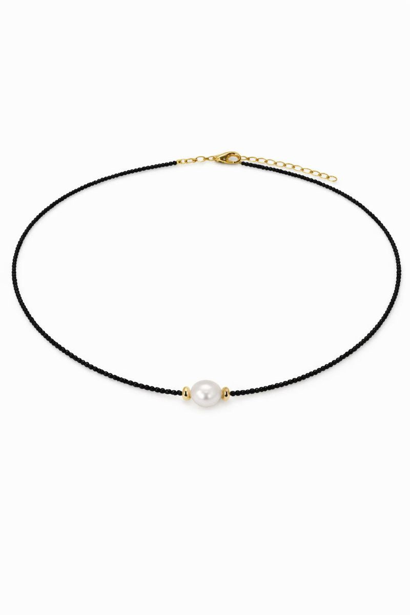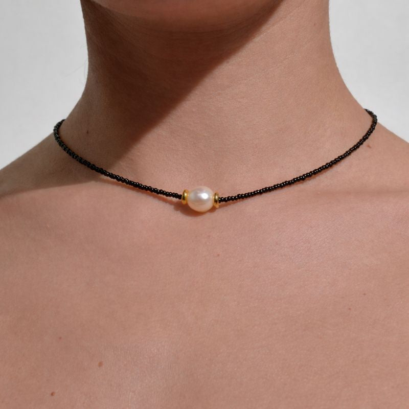 Gargantilla de cuentas negras y perla al centro. 45+5cm