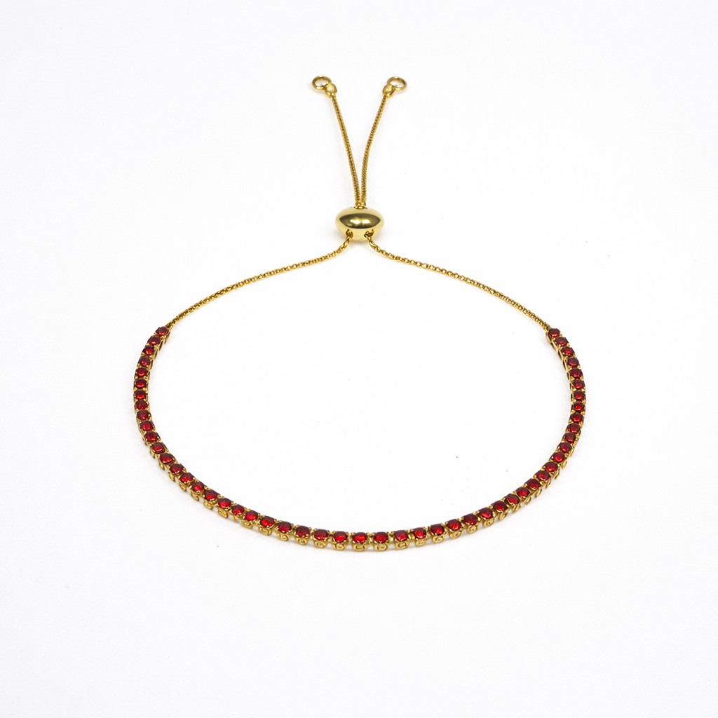 Pulsera de zirconia ajustable en varios colores con baño de oro en 18k.