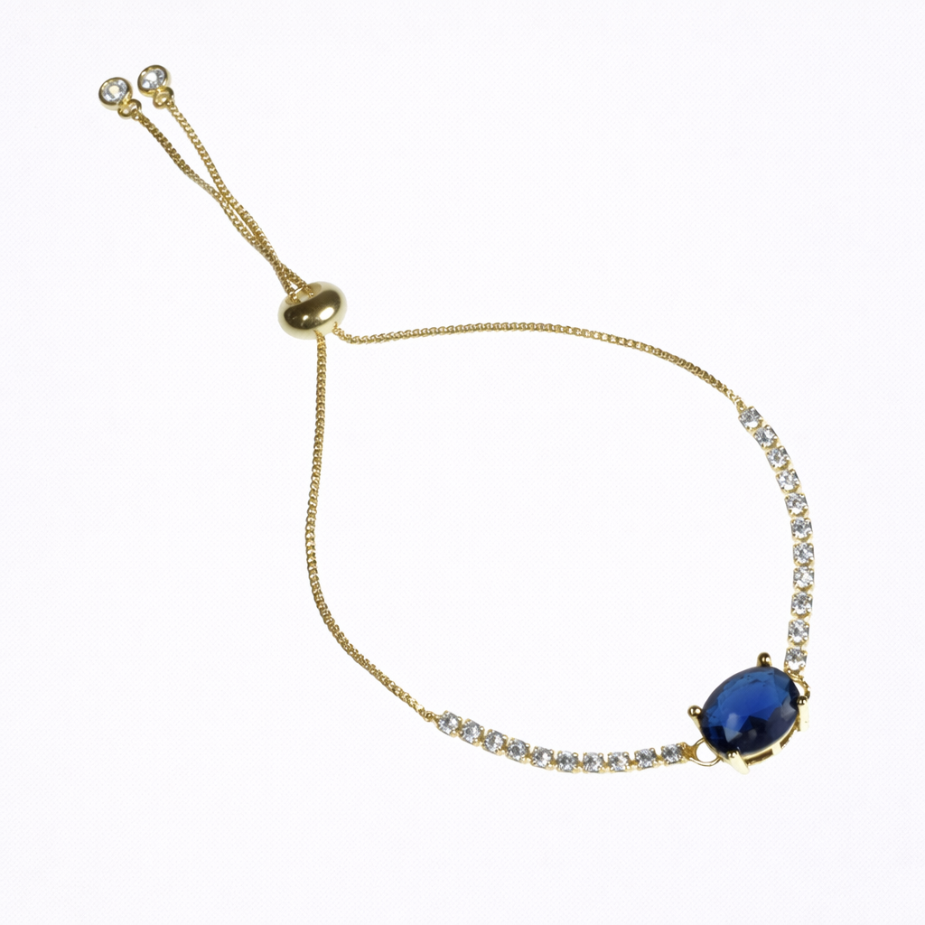 Pulsera de zirconia ajustable en con baño de oro en 18k con zirconia 5A al centro.
