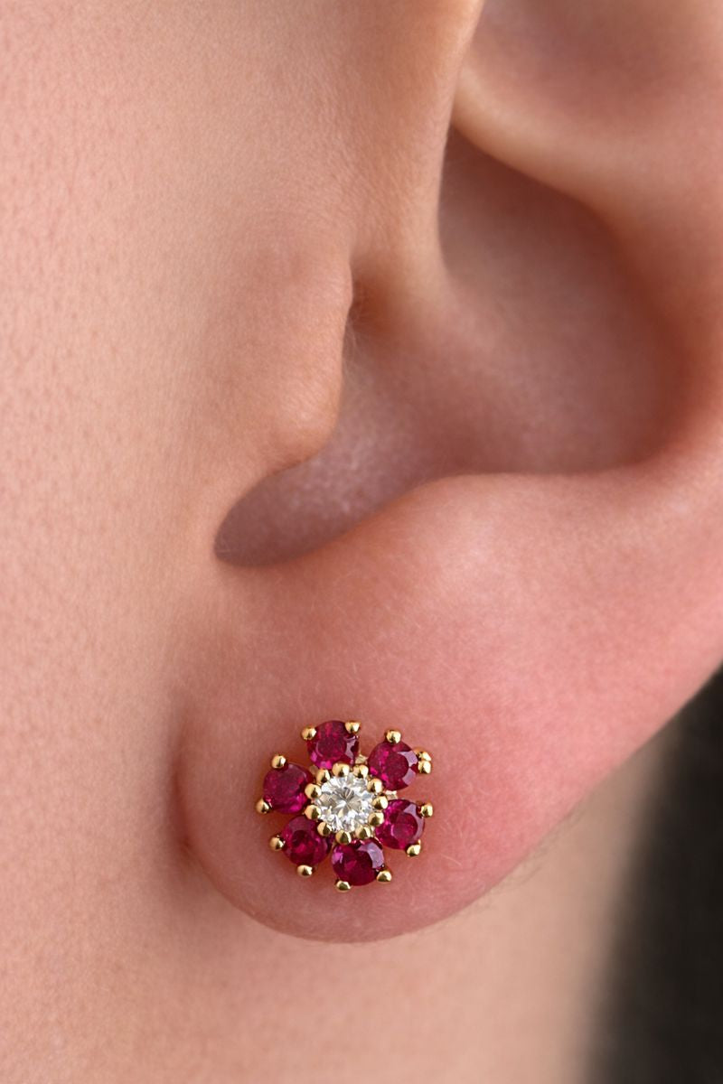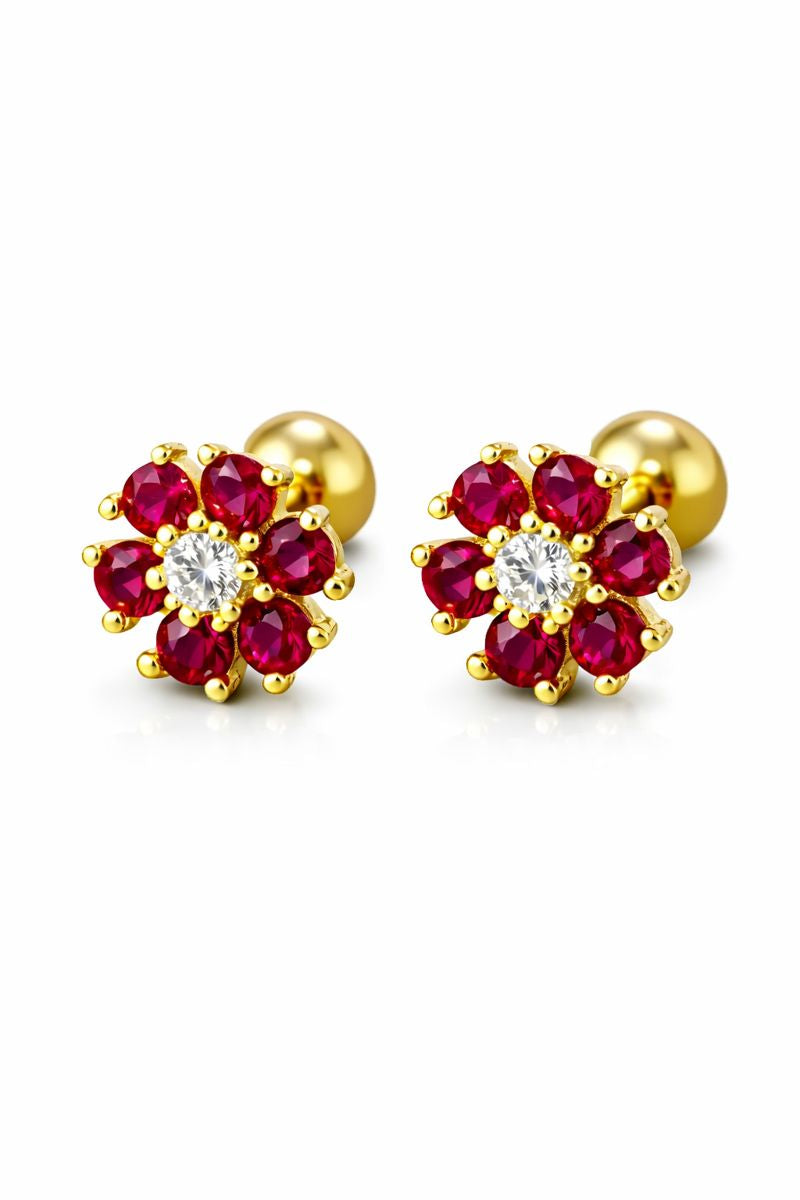 Arete en flor de acero inoxidable con circonia.