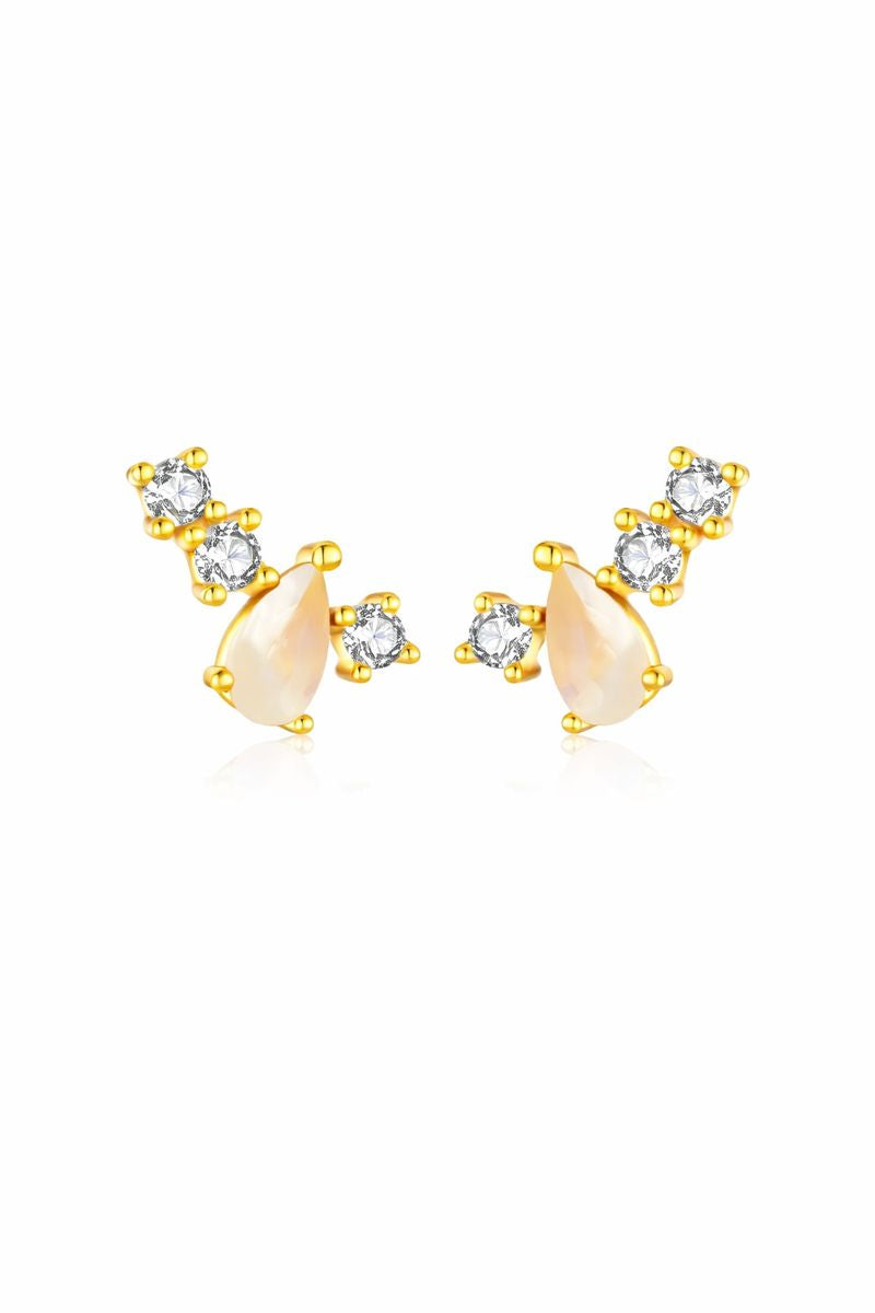 Arete con zirconia en forma de pera de plata .925 con revestimiento en oro 18k.
