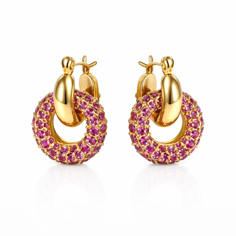 Arracadas de aro desmontables chapados en oro de 18k, hipoalergénicos, de acero inoxidable, redondos, con zirconitas.