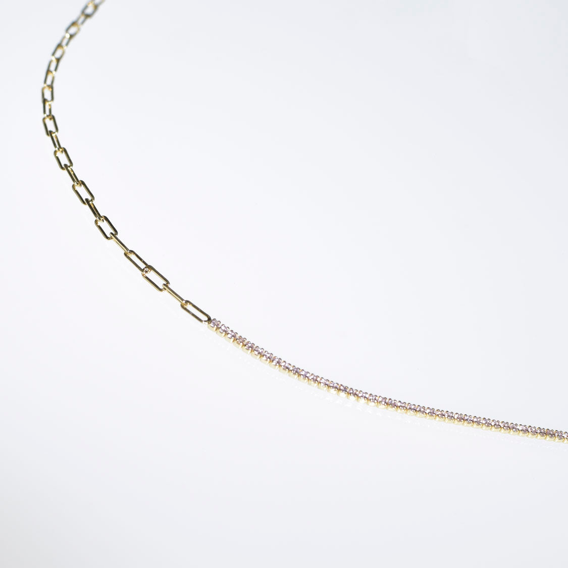Cadena en Plata de Ley .925 con zirconia, mitad cadena, mitad zirconia rosa revestimiento oro 18k.