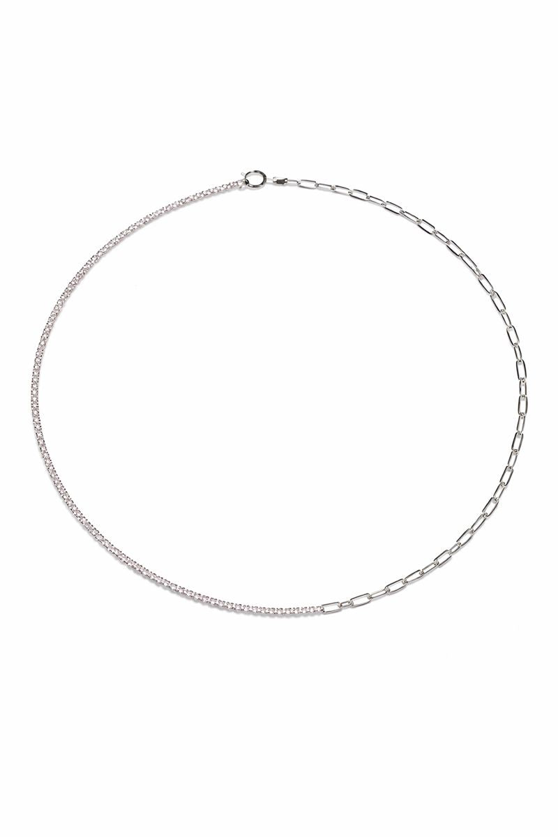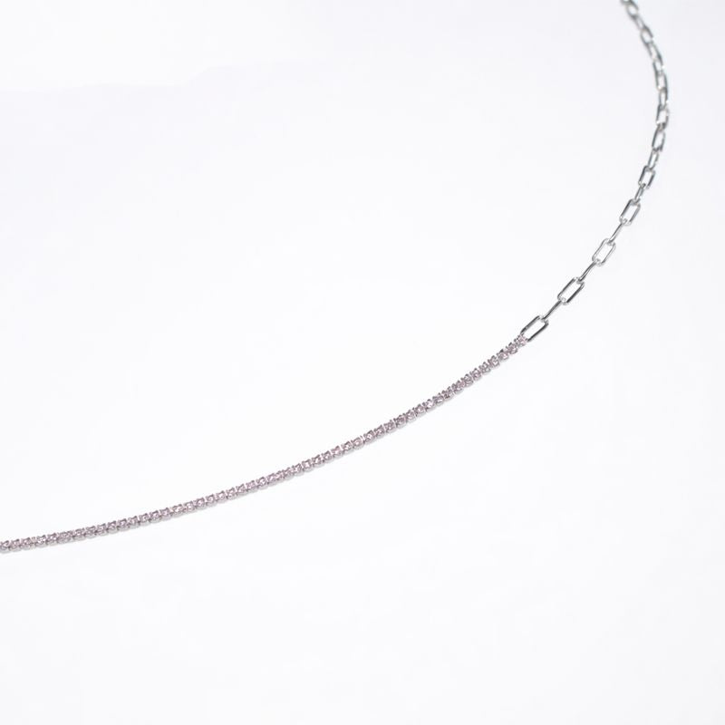 Cadena en Plata de Ley .925 con zirconia, mitad cadena, mitad zirconia rosa revestimiento rodio. 45cm.