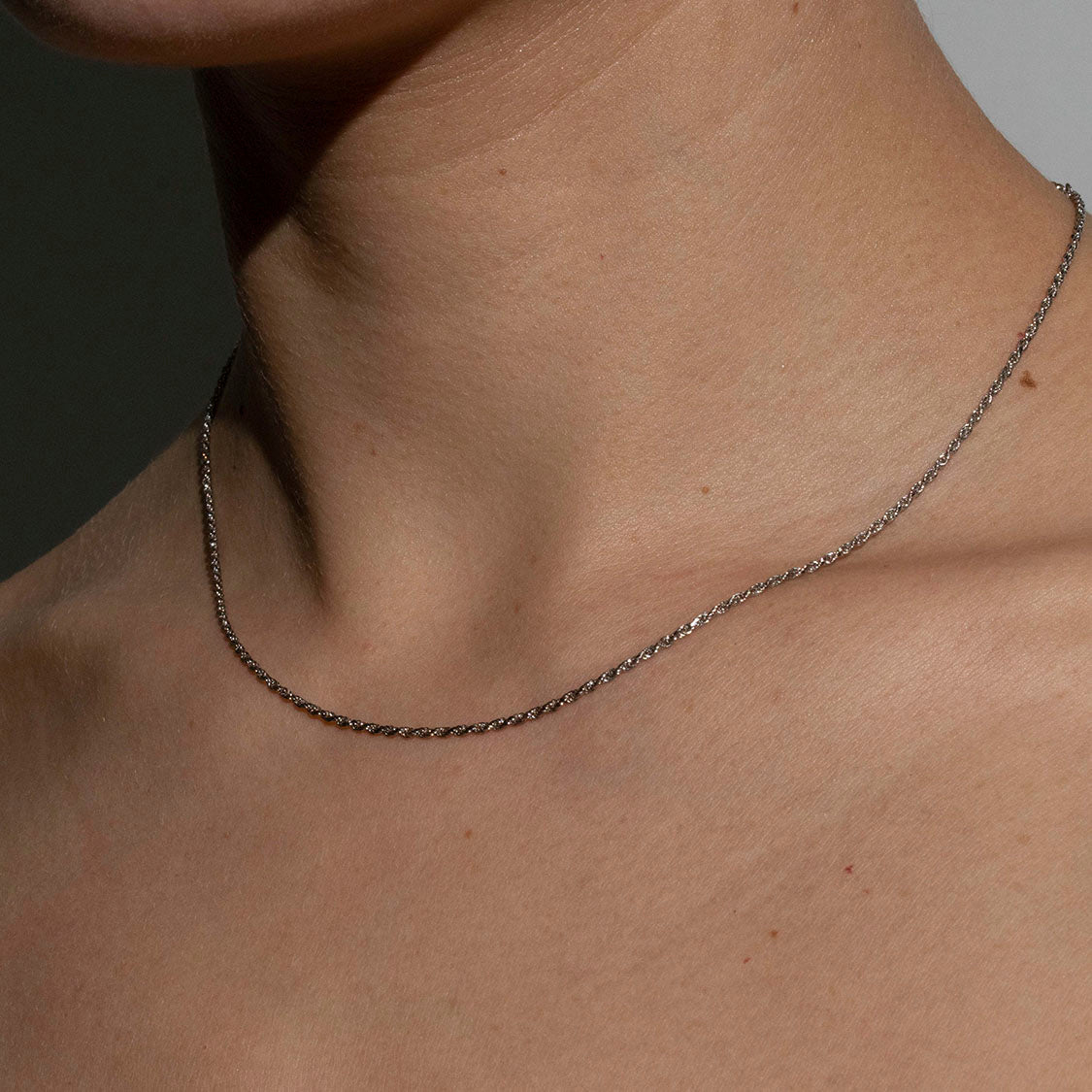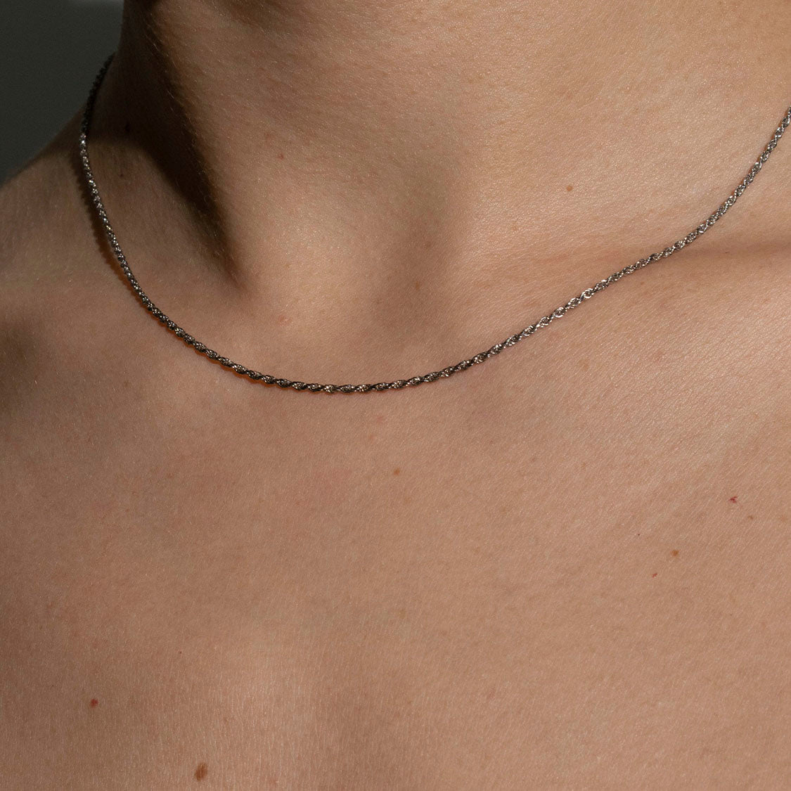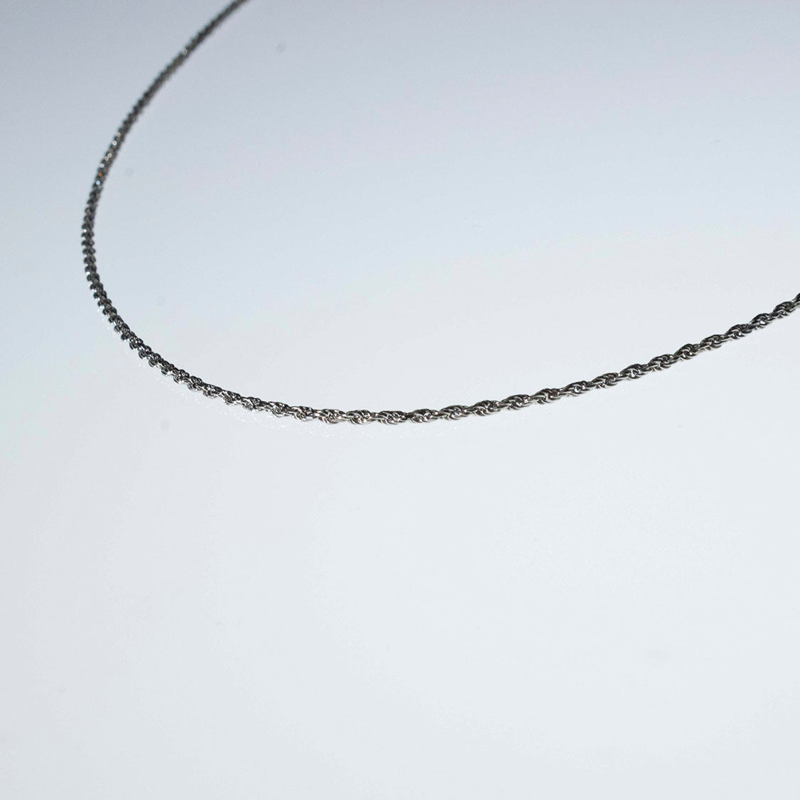 Cadena tipo de Cuerda Trenzada de Plata de Ley .925 Chapada en Rodio.