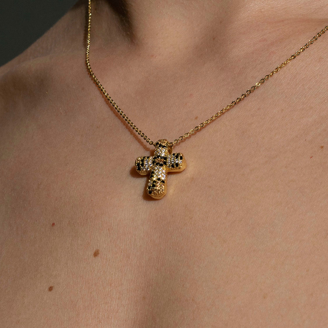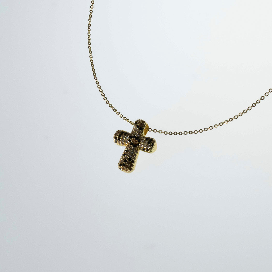 Cadena chapada en oro de alta calidad, collares con colgante de Cruz de circonita cúbica 5A color dorado.