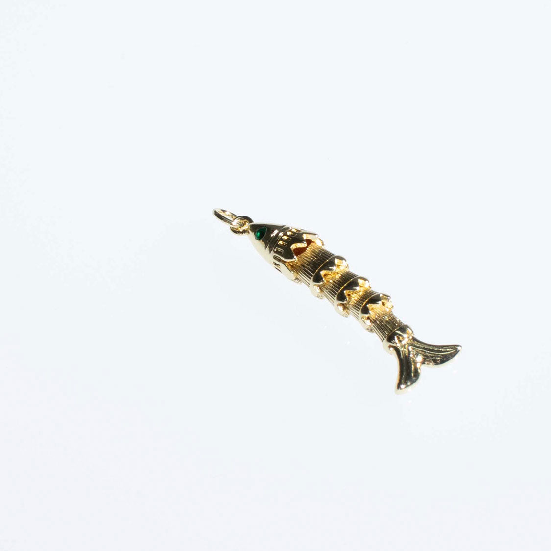 Charm pescado de en baño de oro 18k en colores ojo verde.