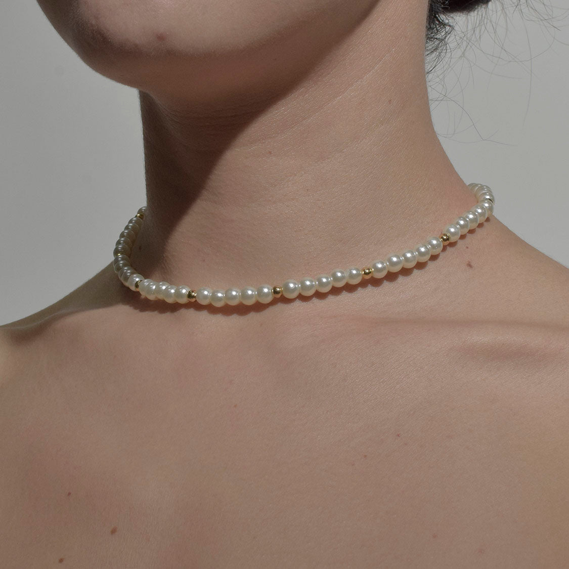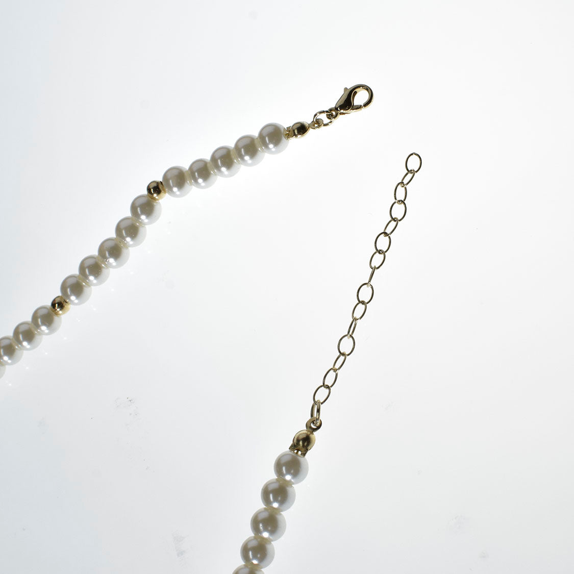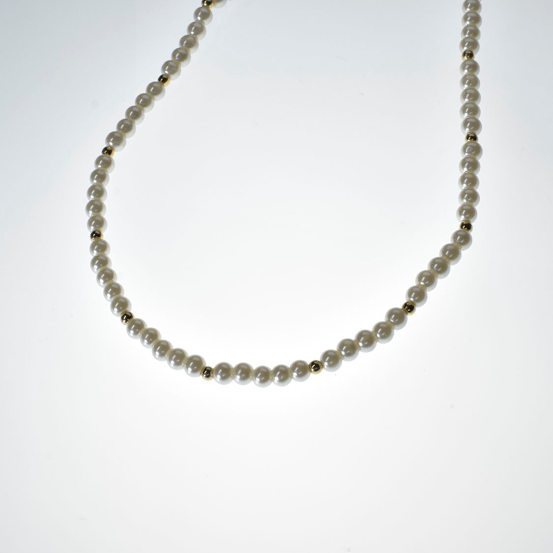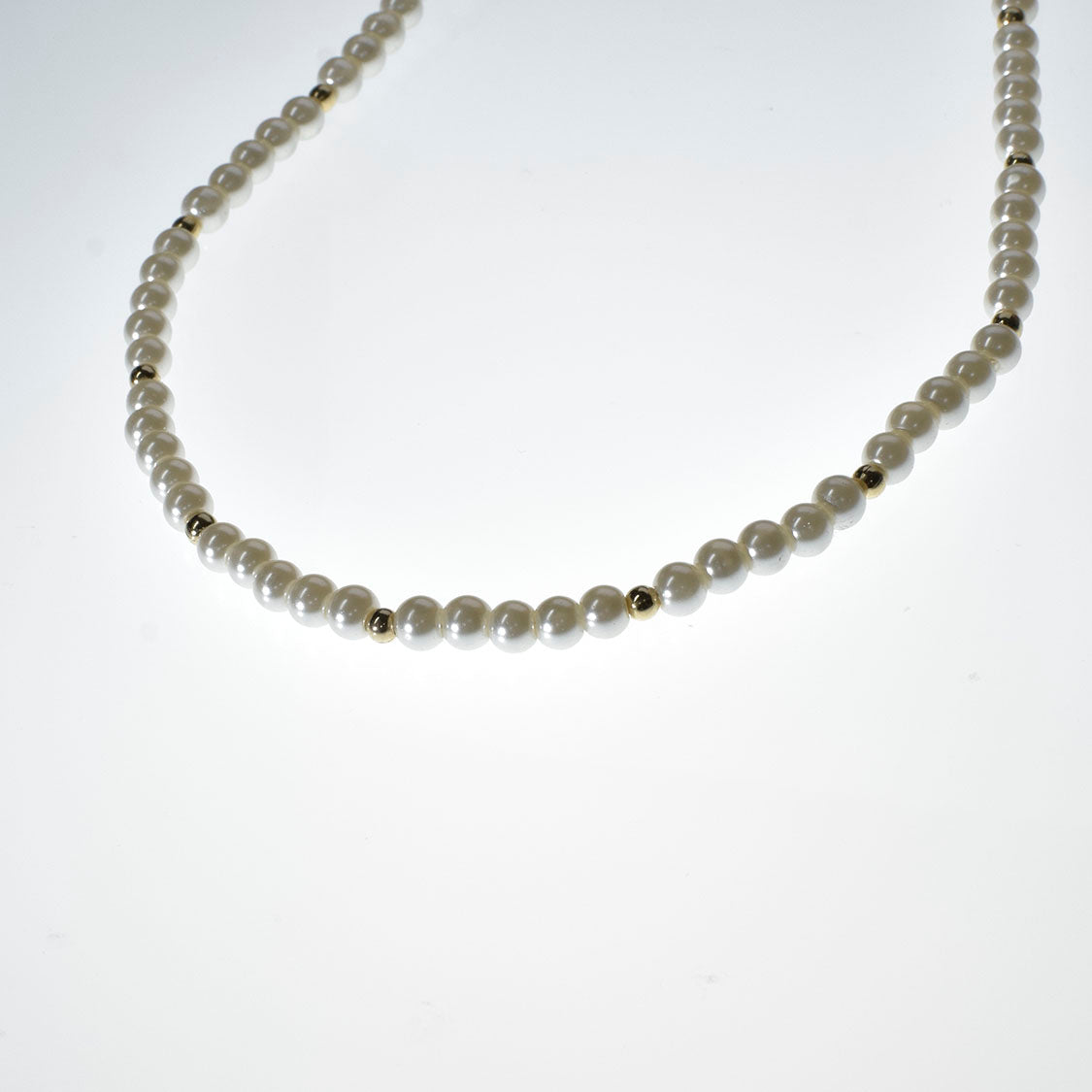 Gargantilla de cuentas doradas y perlas. 35+5cm.